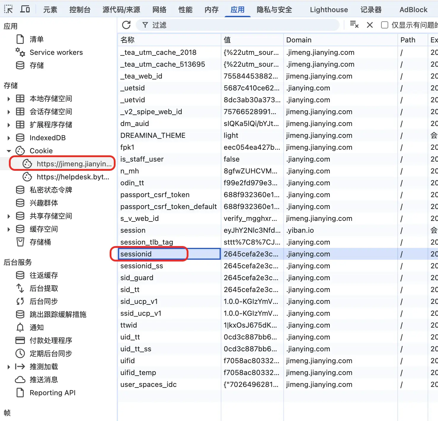 在即梦节点中有一个sessionId是必填的,这个我们可以先登录即梦,然后在 F12 里面找到该ID: