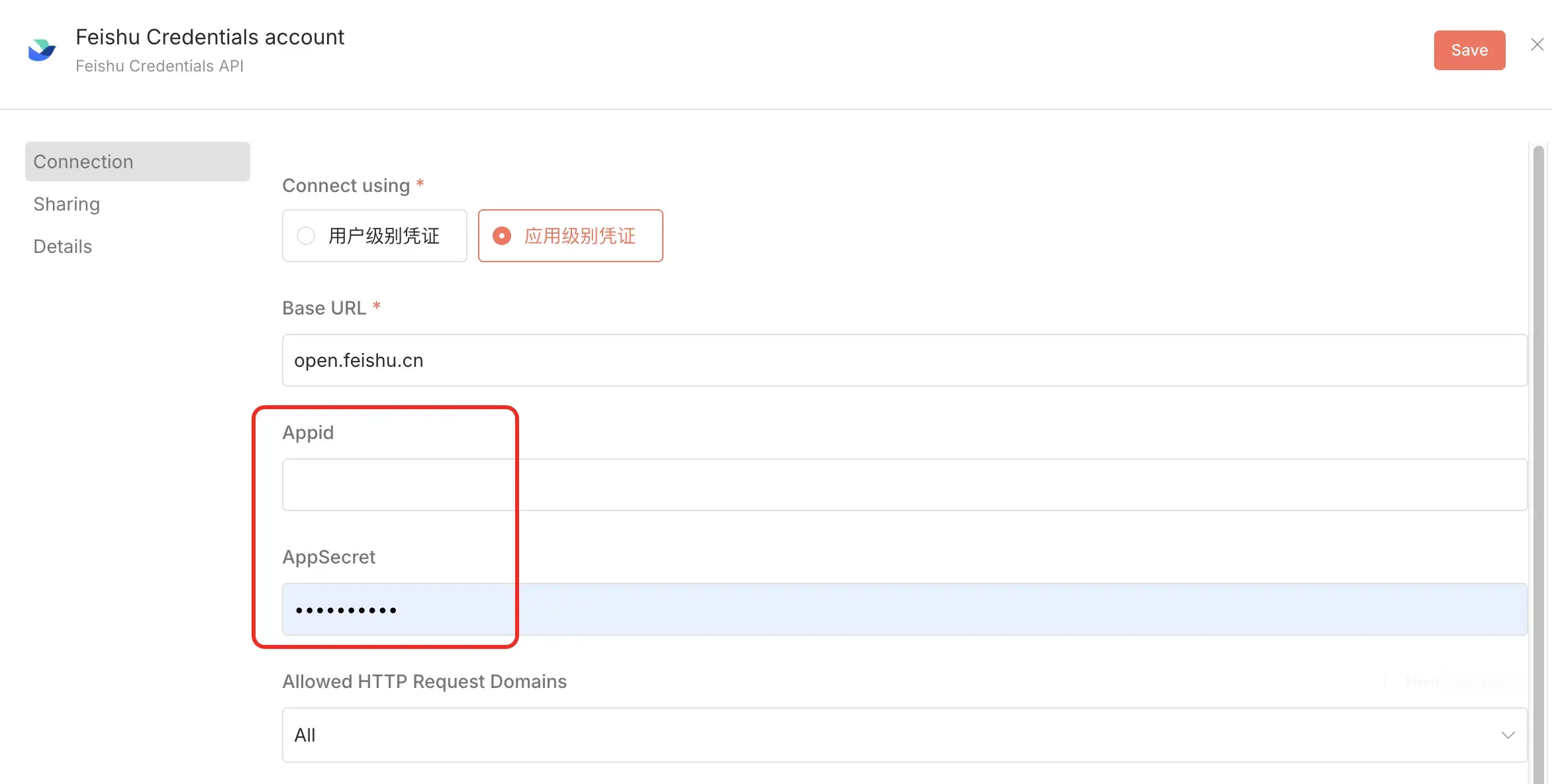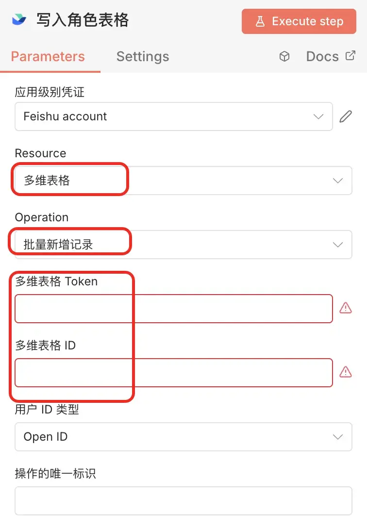 最后的飞书节点,需要配置我们最早创建的应用 App ID 和 App Secret。