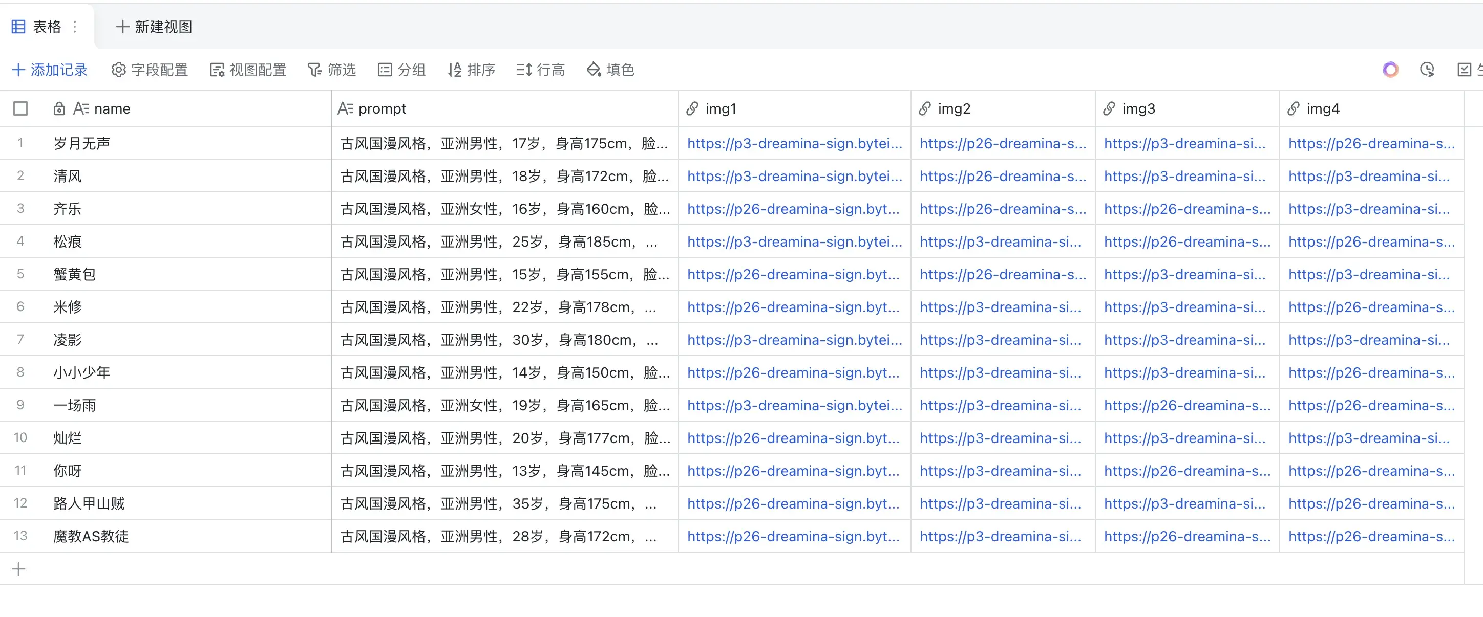 运行完成后的结果也会自动的写入到飞书多维表格中,注意即梦生成的链接有效期只有1个小时,最好是下载到本地或上传到图床。