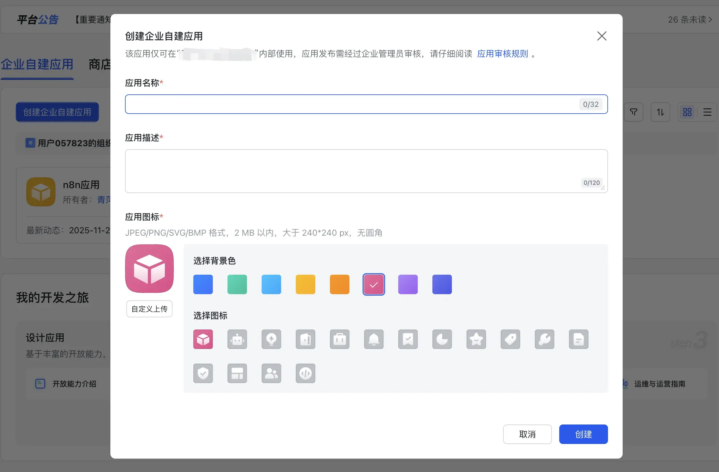 创建完成后再进入应用设置权限: