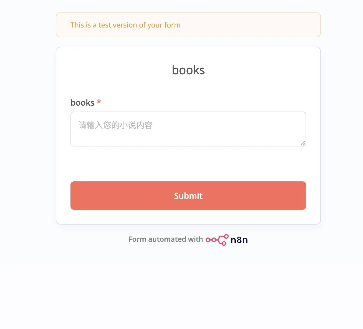 表单中就一个字段,文本输入框类型,用于输入小说内容: