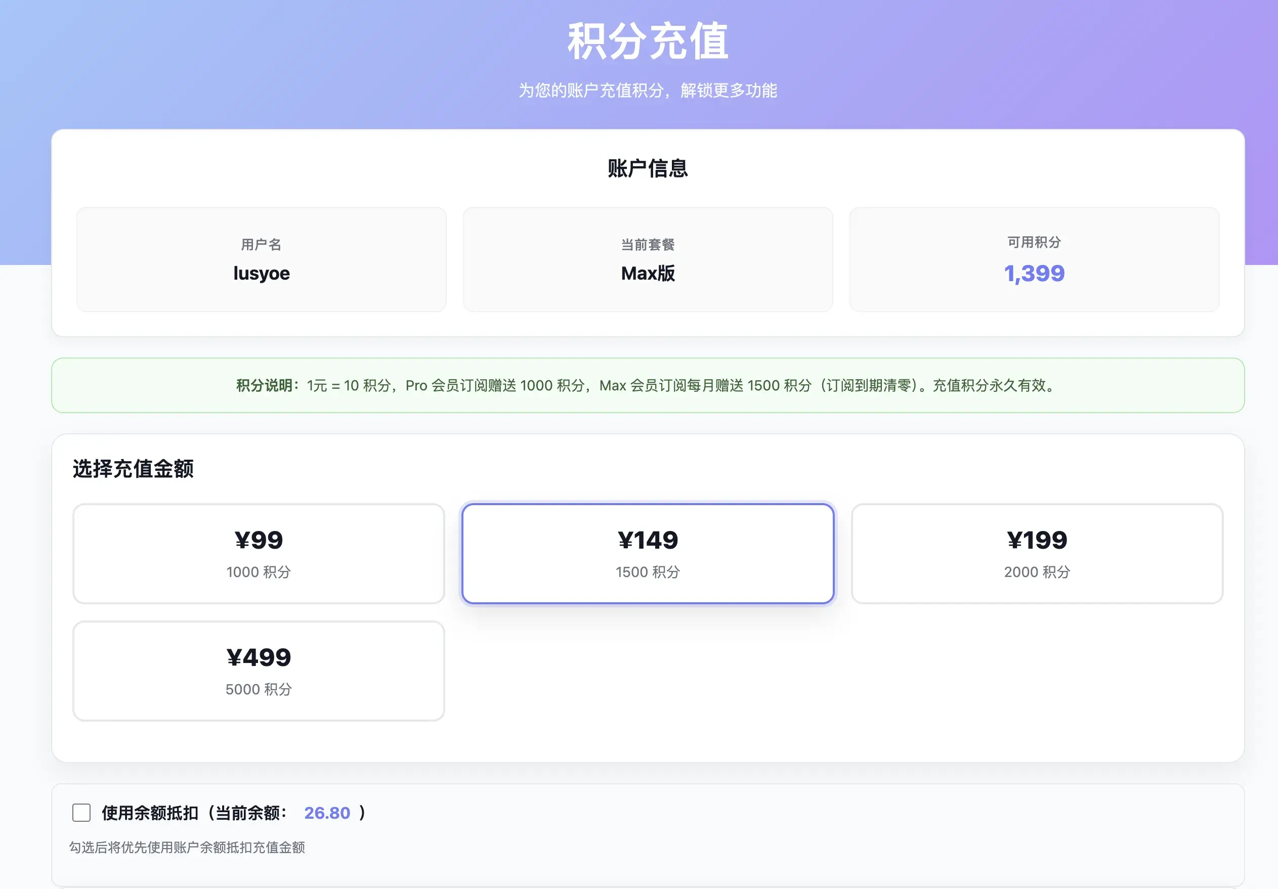 从最早的订阅制,到余额充值,再到永久套餐,最终演变为统一积分体系,这背后其实是一套完整的产品演进逻辑。