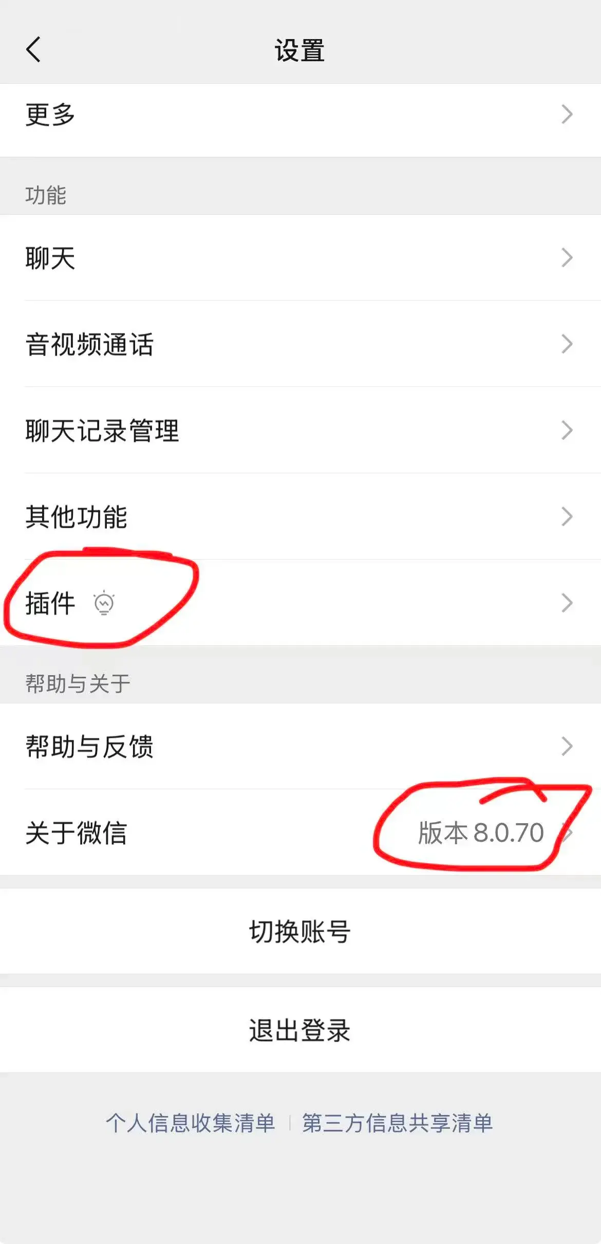 打开微信,进入 设置 -> 插件,在这里可以看到插件列表,注意版本需要升级到 8.0.70。